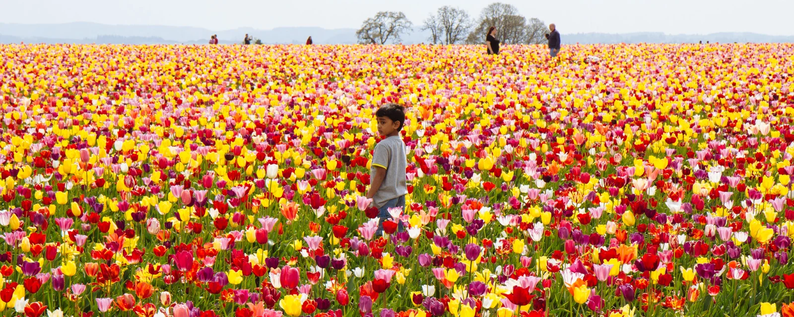 Tulip bulbs are classified as early to mid-season flowers. This means that in the Portland area, their bloom season runs from March through May. Likewise, the Wooden Shoe Tulip Festival runs from mid-March to early May, with the most flowers in full bloom around mid-April. Blooms only last for about two weeks, so don’t wait too long to frolic in these fields!
