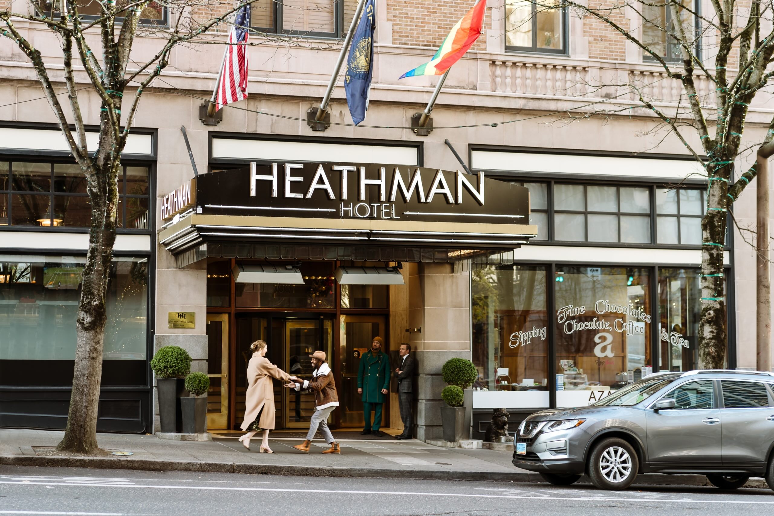 Valet parking is available at Heathman Hotel for $55 per day with unlimited in-and-out privileges. Need to recharge? We offer complimentary electric vehicle charging. As there’s no on-site self-parking, please let our team know upon arrival, and we’ll coordinate the arrangements with our valet team.